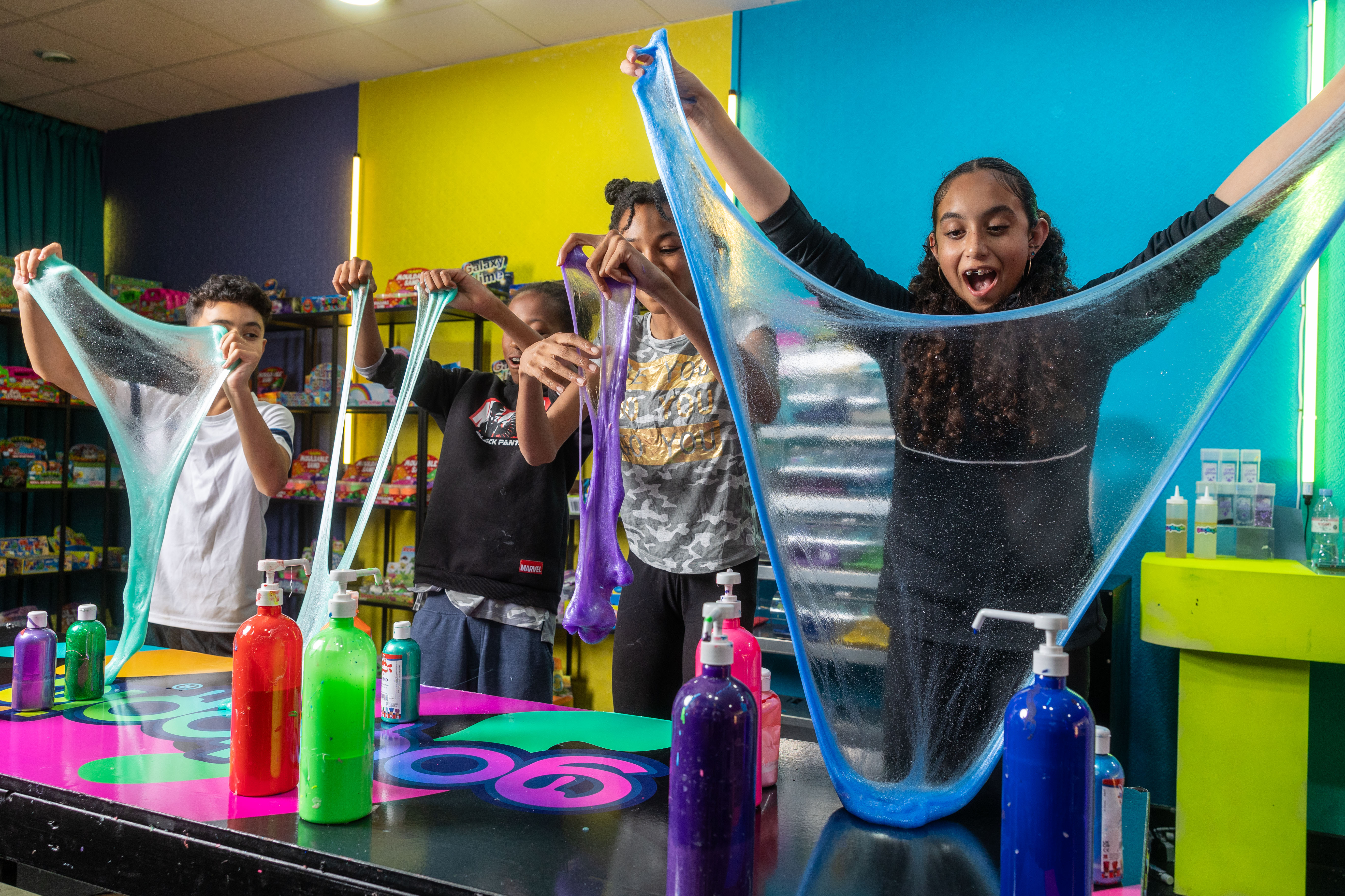Choose from a wide range of colours, mix-ins, scents, and add shaving foam for fluffy slime in a 1 hour workshop or party!