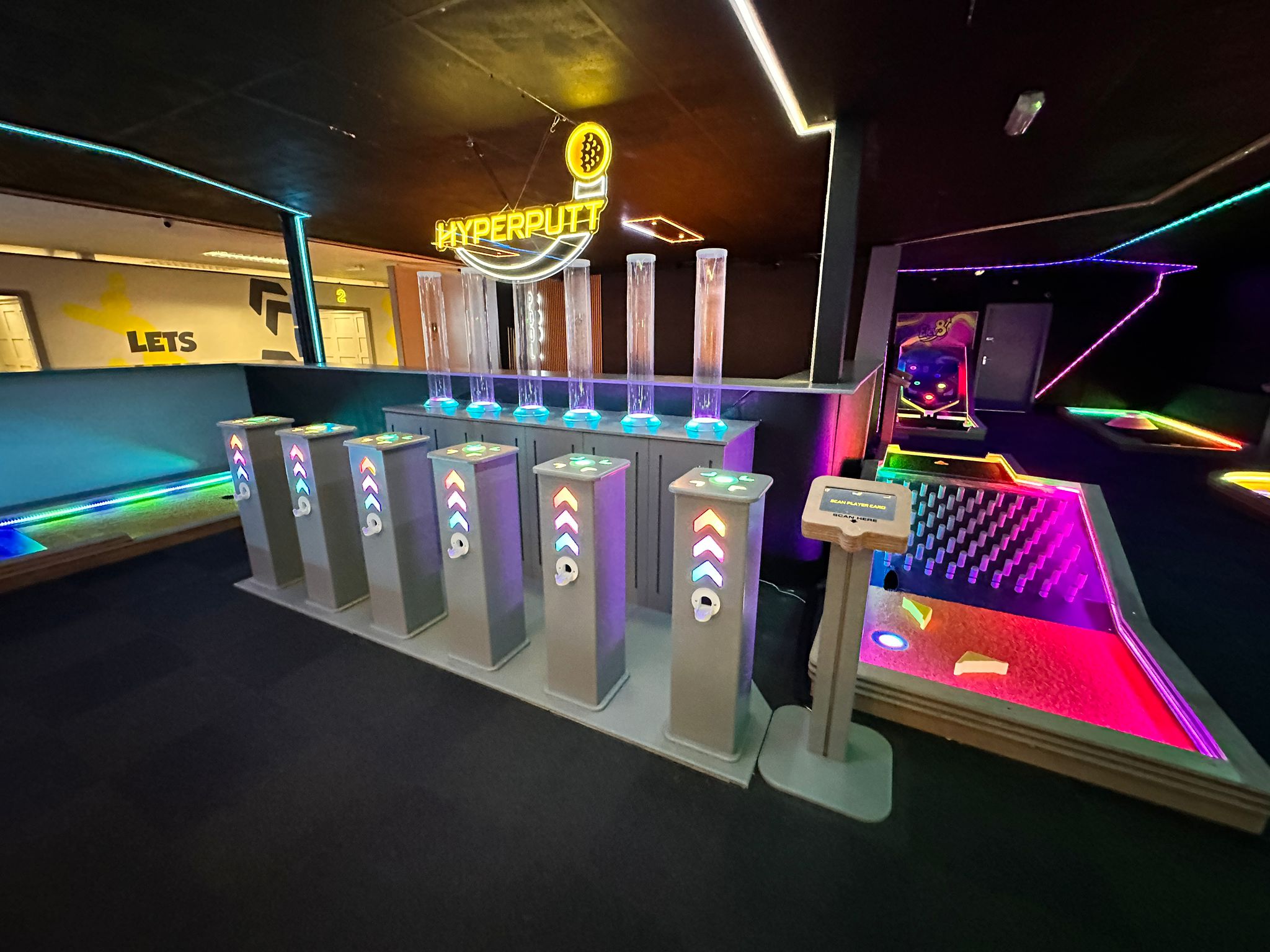 Invite your friends and family to pick up a putter on our unique 9 hole interactive golf course with a twist -like no other!